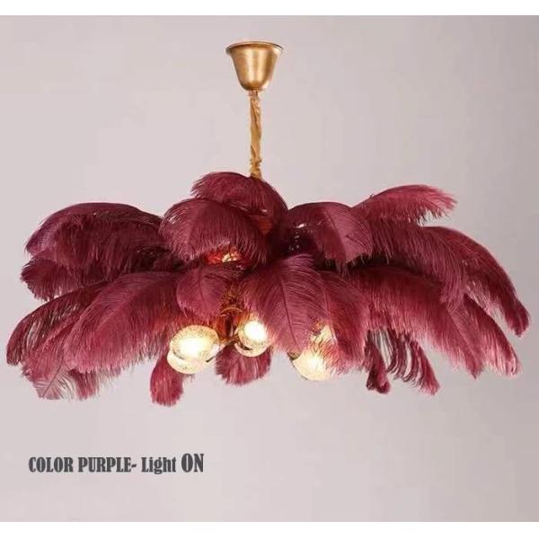 1. Natural Ostrich Feather Ceiling Pendant Lamp with various feather colors.